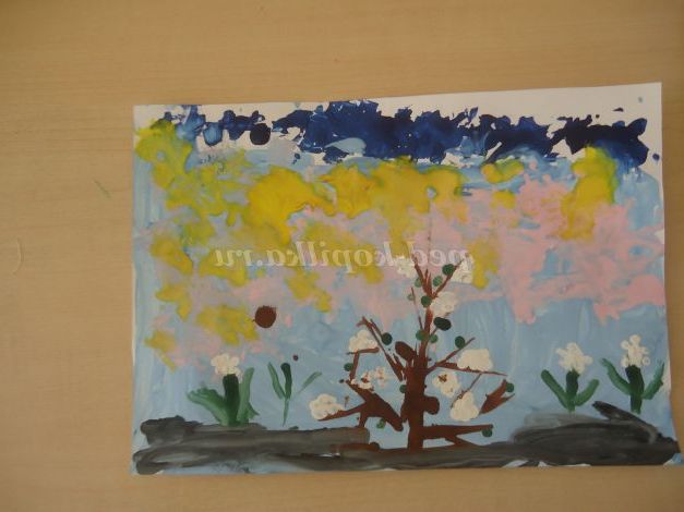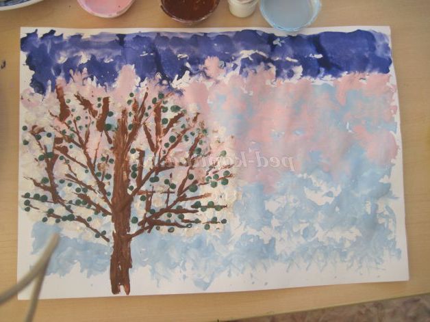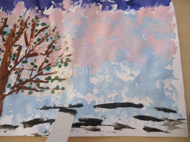 Майстер-клас з малювання з використанням нетрадиційної техніки, малювання паперовими грудочками: "Весняної пейзаж"