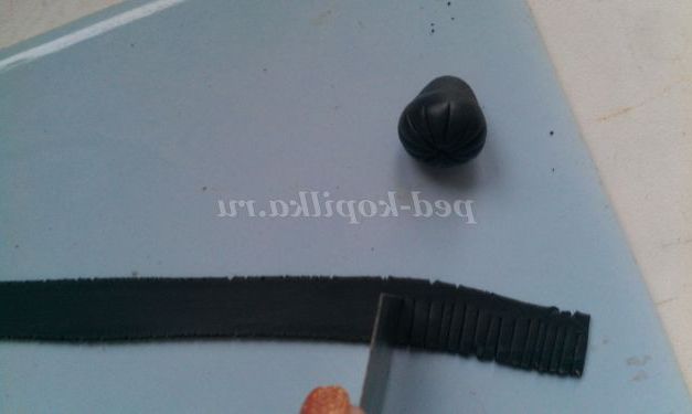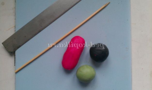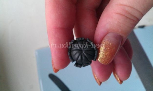 2 крок. Робимо серединку. Скачаємо з чорної пластики кульку. Розділимо його різаком акуратно на частки, як показано на рисунку.