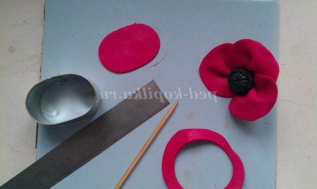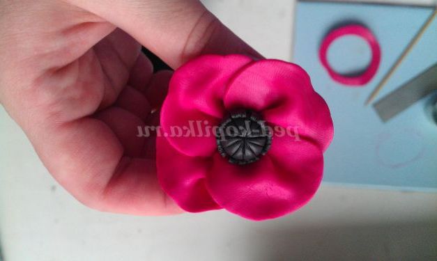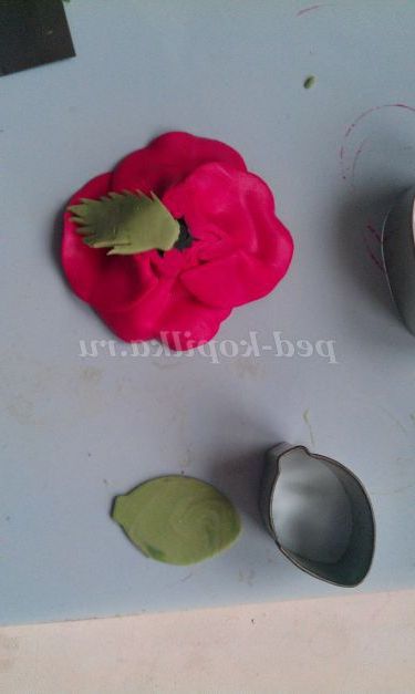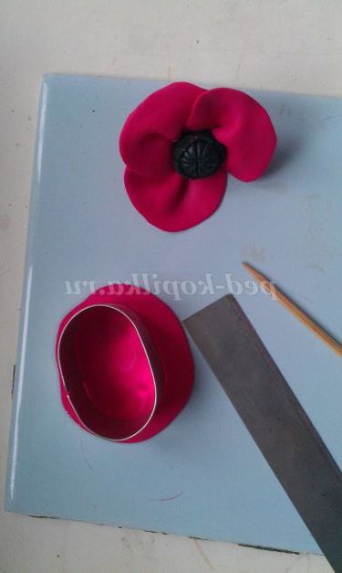 5 крок. Починаємо оформляти пелюстки. Добре розімніть червону пластику. З допомогу. Овального катери наріжемо 4 пелюстки. Розімніть Руками кожна пелюстка, надаючи йому більш тонку витончену форму. І починаємо збирати квітка.