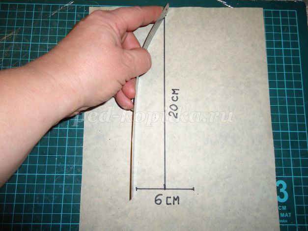 9. Для другого ярусу ковпака малюємо пелюстки (ширина 6 см, висота 20 см). Вирізаємо з паперу 4 шт., прикріплюємо до масці з допомогою скотча