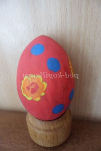 а можна на підставки пофарбовані в тон з кольором яєць, також покритих лаком.