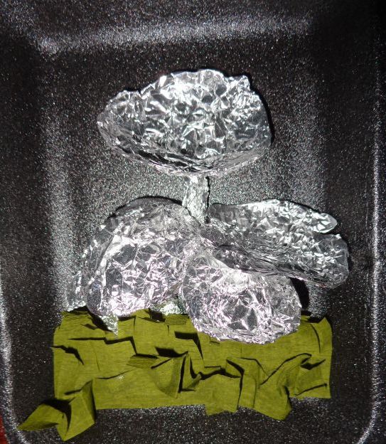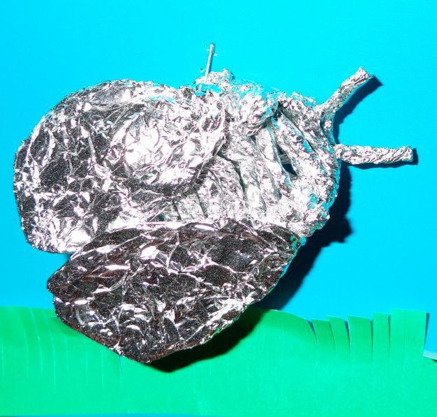 з фольги можна ліпити, накладаючи її шар за шаром і надаючи пальцями потрібну форму. Можна скористатися додатковою формою - накласти лист фольги на предмет і однією рукою направляти складки вниз, інший притискати їх до форми