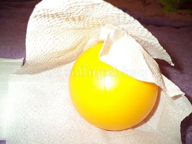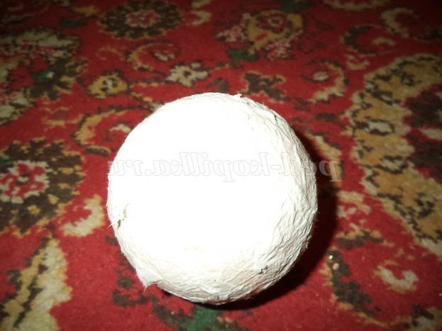 2. Беремо кулю, загортаємо в білу,паперову серветку, починаємо просочувати його розведеним клеєм - робимо три, чотири шари. Просушуємо на батареї годину, півтора;