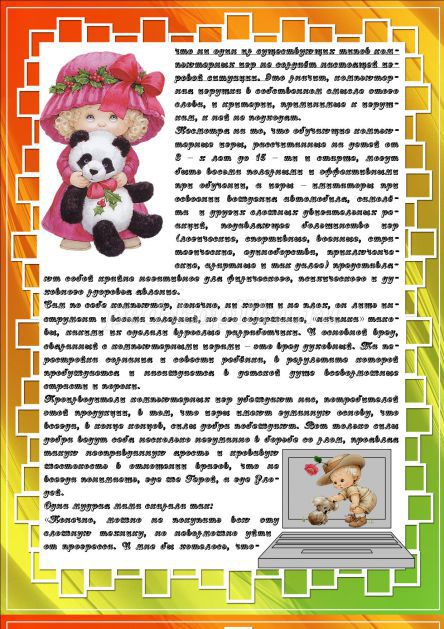 Якщо ще 10 - 12 років тому батьки, безтурботно поступаючись прохання своїх чад, набували ігрові приставки, хто мав можливість комп'ютери і наївно вважали, що залучають дитину до благ цивілізації, розвивають його інтелектуальні здібності, то сьогодні багато скарги в психологічних консультаціях пов'язані з надмірним захопленням дітей комп'ютером. Іграшка стала більше, ніж іграшка. І навіть необхідність у комп'ютері, як в інструменті відкидається багатьма батьками.