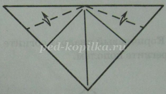 До лінії згину перегинаємо основу трикутника