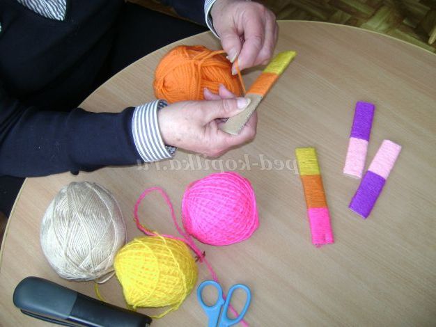 1. Накручуємо пряжу на шаблони, чергуючи її за кольором.