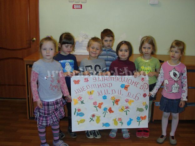 Підготовча робота: Вихователем заздалегідь підготовлений лист ватману з вітальним текстом. Приготовані матеріали і розкладені по столах.