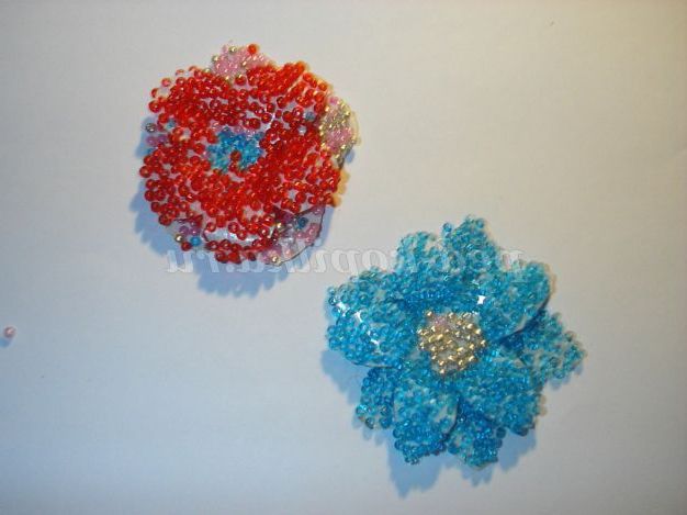 Бісерна мозаїка по воску. Специфіка роботи полягає в тому, що на основу (фанеру, дощечку), наноситься тонким шаром розплавленого на водяній бані віск. Після затвердіння воску товстою голкою або порожнім стрижнем від кулькової ручки наносимо контурний малюнок, згідно з яким вдавлюємо. Бісеринки найлегше піддягати голкою і укладати їх в потрібне місце на основі. У нашому випадку замість воску використовується скотч.