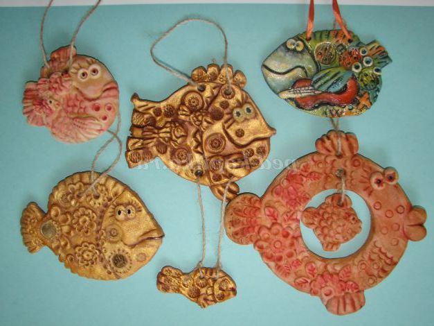 сувеніри з солоного тіста, рибки своїми руками, рибки, вироби із солоного тіста своїми руками, настінні підвіски, ліплення з солоного тіста