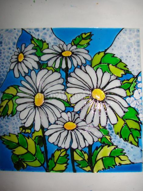 Вашій увазі пропоную майстер-клас з виконання картини «Ромашки» в техніці «заливний вітраж».