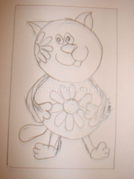 Обведемо внутрішню частину рамочки на папір і в цьому «віконечку» намалюємо кота.
