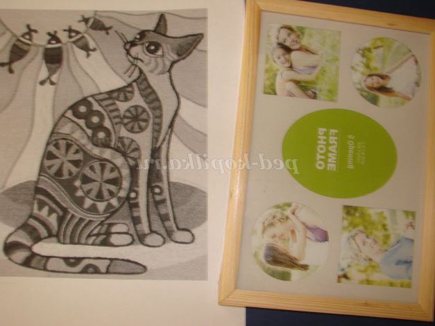 2. Чіткий малюнок, який ви захочете намалювати. Я роздрукувала вподобану картинку з інтернету. Моя улюблена тема - коти. Панно в техніці ніткографія мені дуже сподобалося, тому взяла цей малюнок за основу.