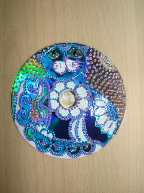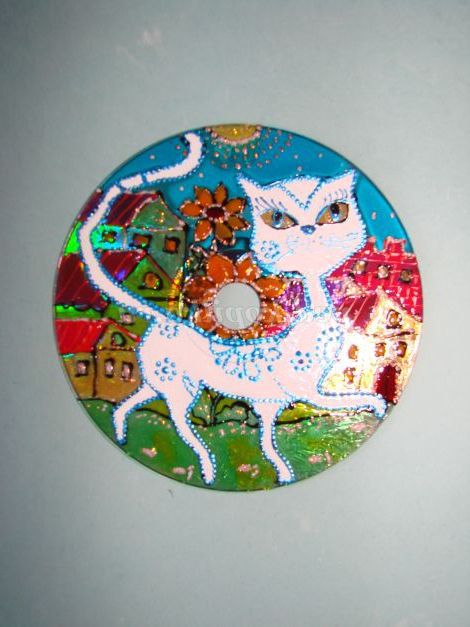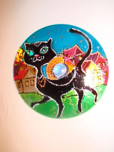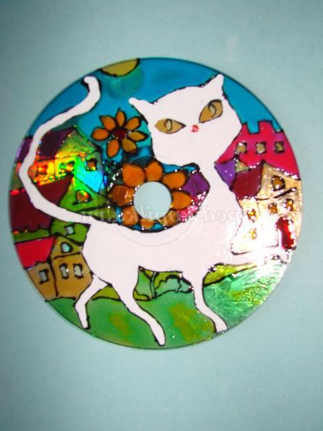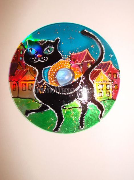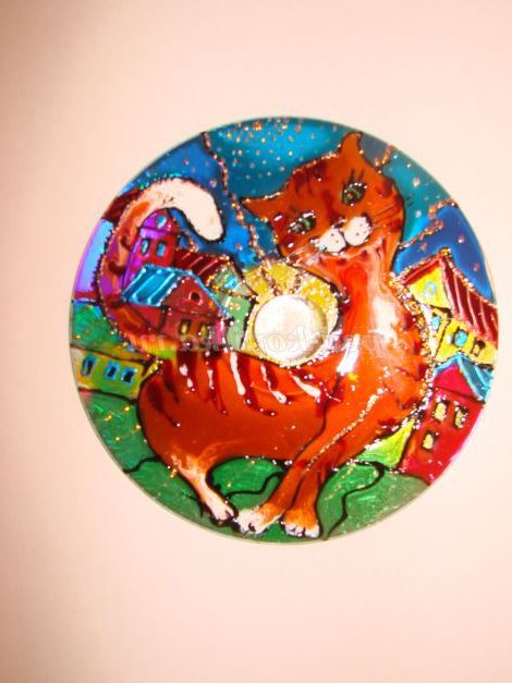 Розпис компакт - дисків вітражними фарбами. Майстер-клас. Коти
