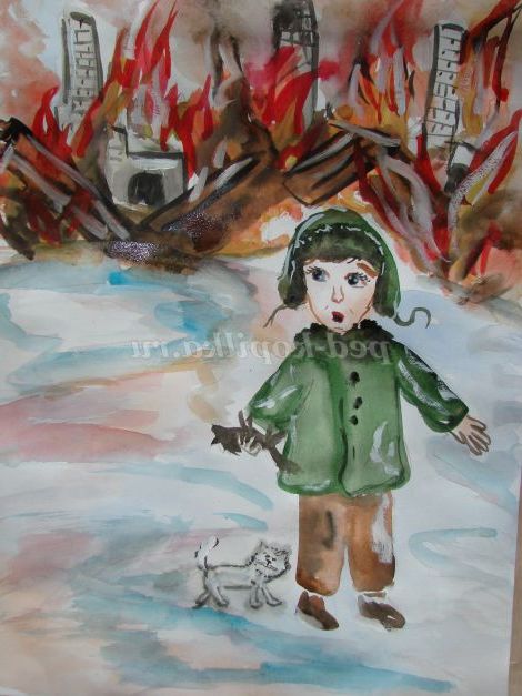 Час йде, все далі відходять від нас ті страшні воєнні роки, але ми не забуваємо його. Кожне нове покоління малює війну, подвиги своїх прадідів і прапрадідів. Головне, щоб війна, залишаючись на малюнках і картинах, ніколи не повторилася в реальності.