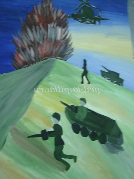 Час йде, все далі відходять від нас ті страшні воєнні роки, але ми не забуваємо його. Кожне нове покоління малює війну, подвиги своїх прадідів і прапрадідів. Головне, щоб війна, залишаючись на малюнках і картинах, ніколи не повторилася в реальності.