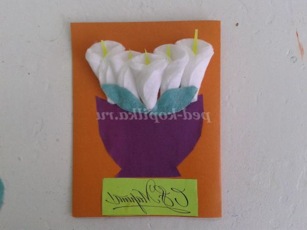 Внизу по середині листівки приклеюємо напис «З 8 Березня!».