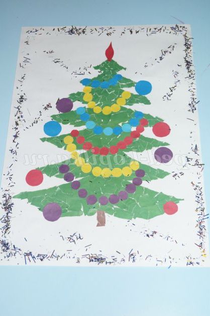 ![]() Новорічна аплікація для дитячого садка. Новорічна елочкаАппликация з відривних шматочків паперу