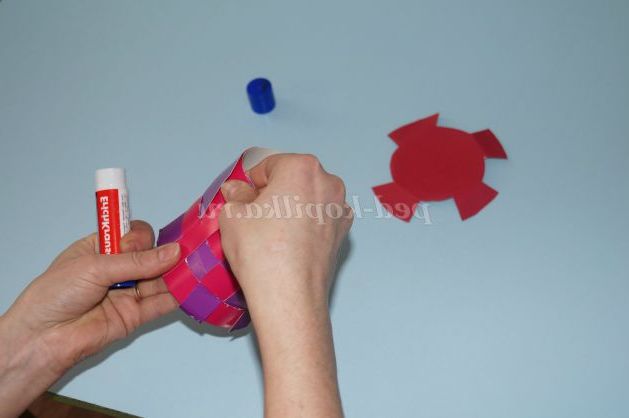 Склеюємо нашу вазу і для дна вирізаємо коло з надрізами і приклеюємо наше денце
