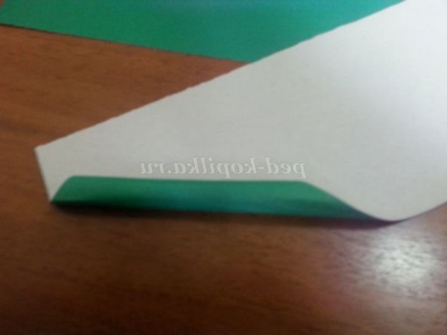 6. Смужку зеленого листа скручуємо трубочкою по діагоналі взявши за край паперу