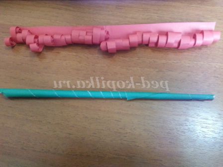 6. Смужку зеленого листа скручуємо трубочкою взявши за край паперу