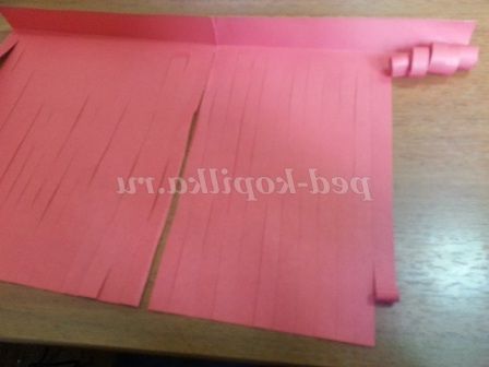 2.Берем лист і робимо невеликий загин зверху і нарізаємо соломкою.