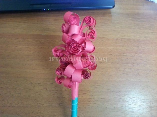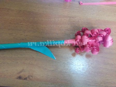 9. Беремо кінчик квітки і приклеюємо його до стеблинки по діагоналі, плавно спускаючись до середини стебла