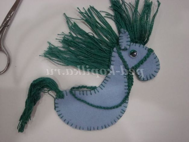 8. Приклеюємо оченята, пришиваємо вушка, гриву і хвіст
