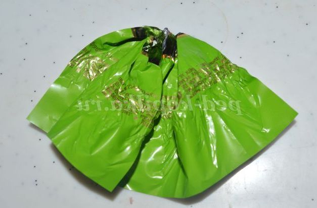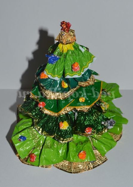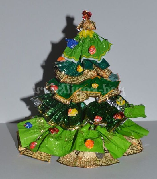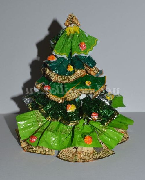 Для ялинки можна використовувати фантики різних кольорів і відтінків.