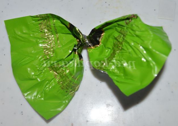 Закручуємо фантик по середині, трохи згинаємо і на місці згину перев'язуємо нитками.