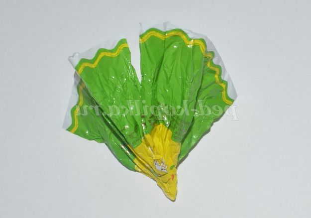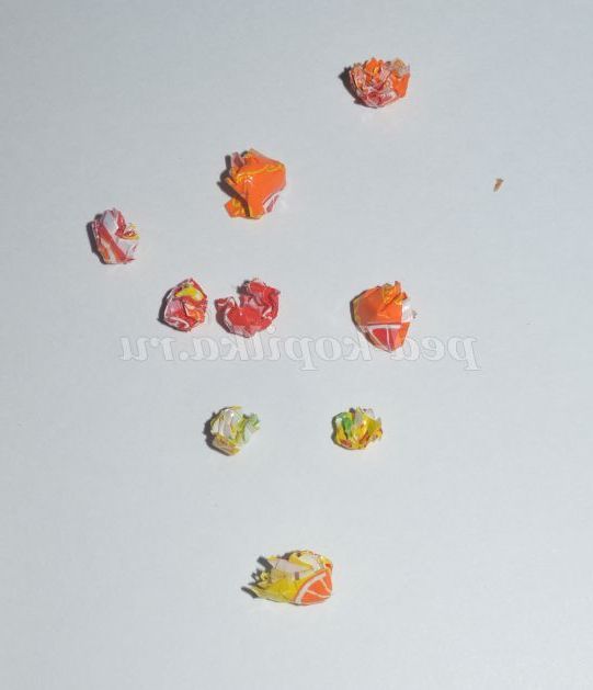 З невеликих шматочків кольорових фантиків скачуємо кульки.
