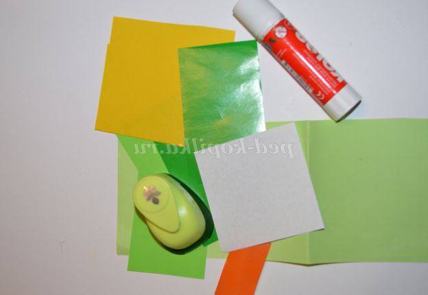 Папір різних кольорів, клей, ножиці, художній дирокол, олівці