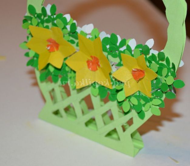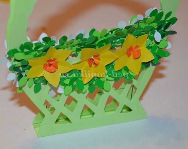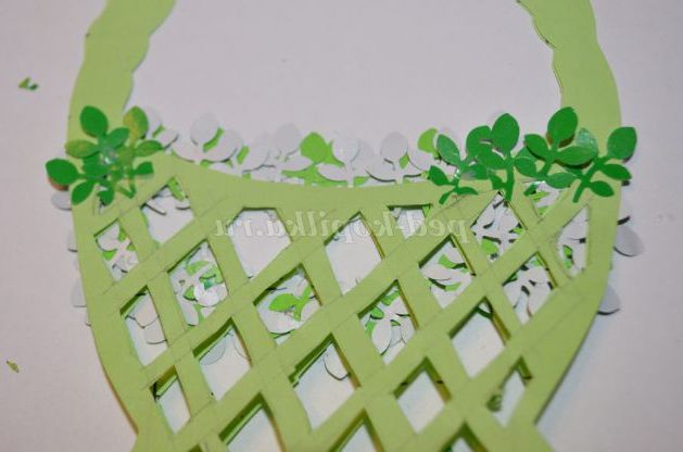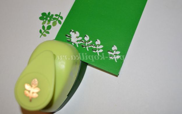 Для оформлення кошики фігурним дироколом робимо листочки.