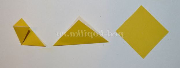 Робимо квіти. Згинаємо квадрат по діагоналі. Кут на підставі