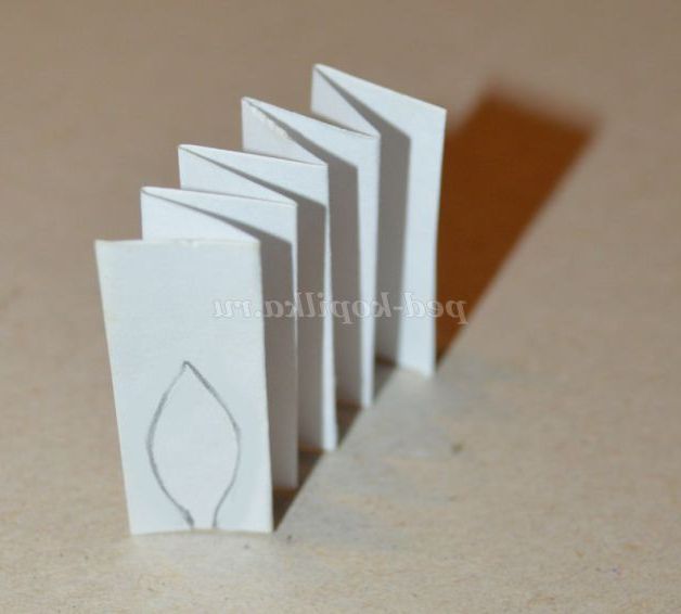 Згинаємо білий аркуш гармошкою, малюємо на ньому пелюстки пролісків.