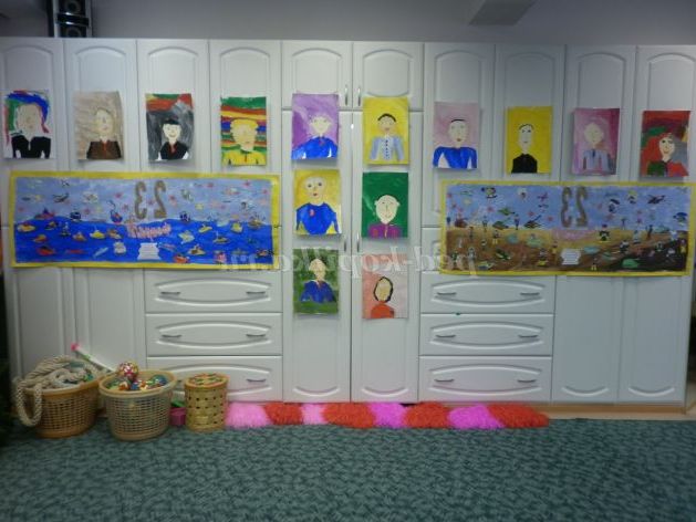 Ще діти на додаткових заняттях з малювання намалювали портрети наших татусів. І всю цю красу ми повісили в музичному залі, перед святом, де наші тата змогли помилуватися роботами своїх дітей.