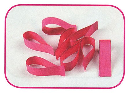 1. Виріжте з червоного паперу 20 смуг шириною 1 см і довжиною 7 сантиметрів і 2 кола діаметром 3,5 сантиметра.