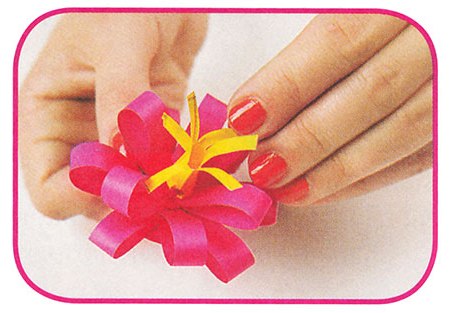 5. Отримані тичинки приклейте у середину кола з великою кількістю петельок.