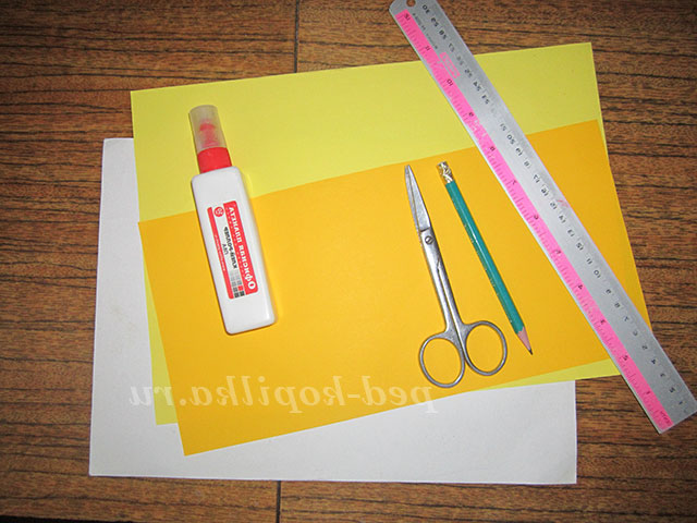 Для того щоб виготовити квіти необхідно: двостороння кольорова папір, картон, клей ПВА, ножиці, простий олівець.
