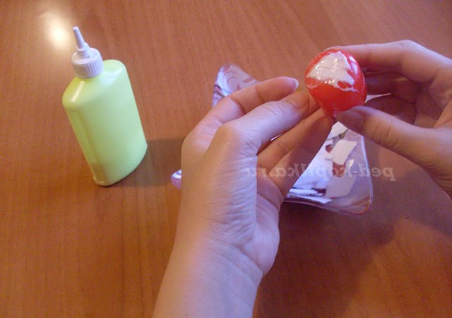 Основою квітки буде кіндер-сюрприз. Обклеюємо його простий папером, щоб торцовочки краще трималися.