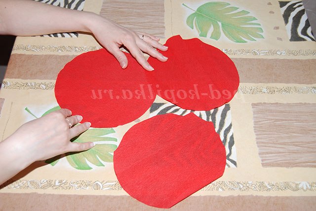 1. Вирізати три кола з червоної крепованого паперу.