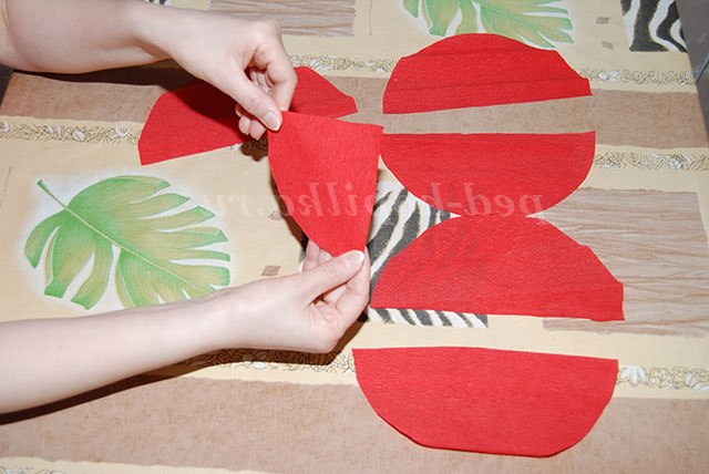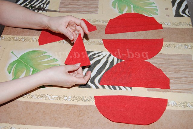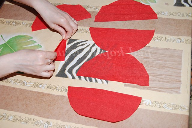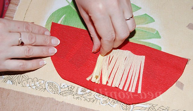 3. Півколо з червоної крепованого паперу складіть навпіл - «спідничка для мами».