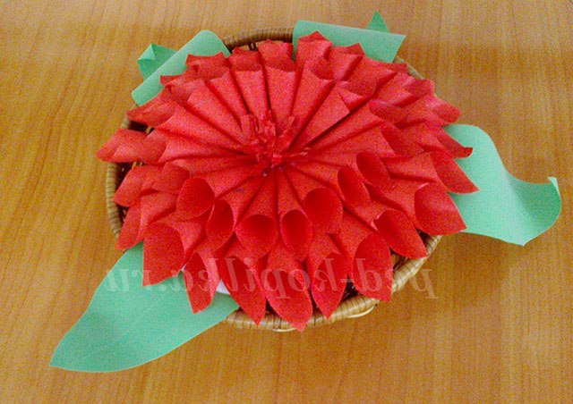 Такі квіти можна використовувати для прикраси стін на свято, а також використовувати у вигляді «шапочки» на маскарад - для цього на основі з двох сторін прикріпити гумку. Якщо взяти деталі розміром менше, то можна зробити дуже красиве прикраса для волосся.