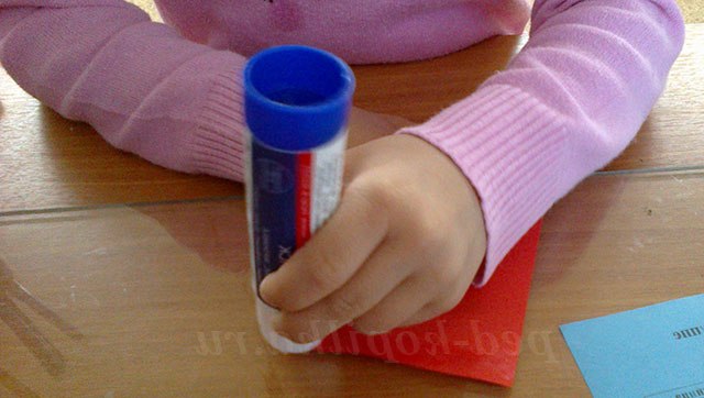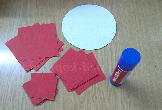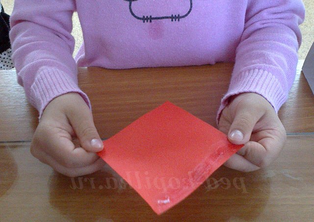 3. З квадратів з допомогою клею робимо «кульочки». На одну сторону квадрата наносимо клей.