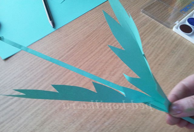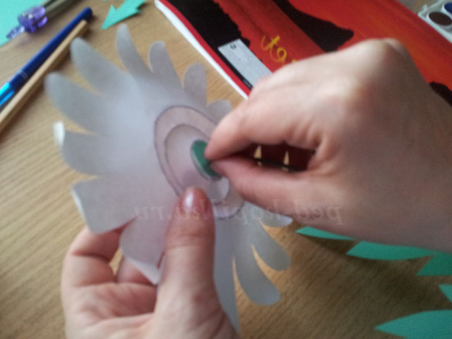 9. Із зеленої двостороннього паперу вирізаємо пелюстки