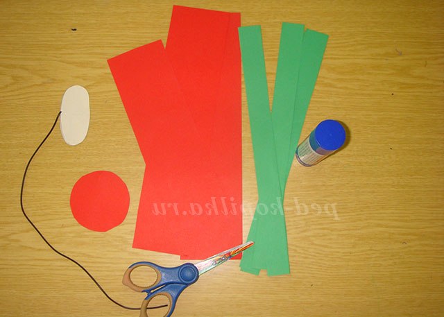 2. Приступимо до виготовлення пелюсток. Смужки паперу червоного кольору складаємо удвічі, поки не вийде 8 прямокутників.
