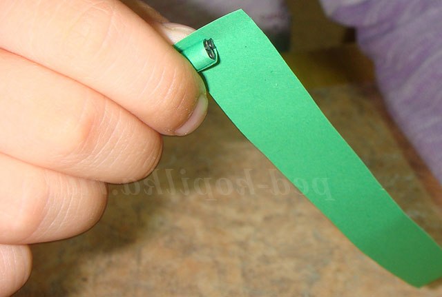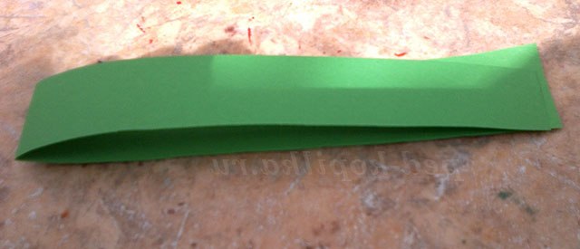 13. Щоб виготовити листи, смужки зеленого паперу складаємо в четверо.