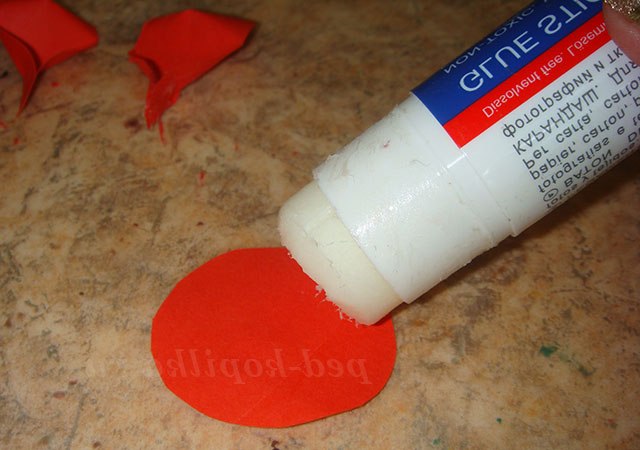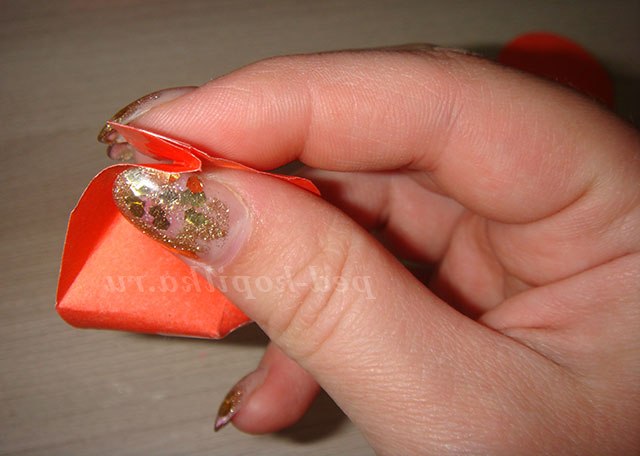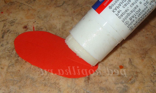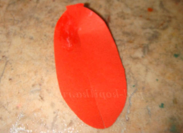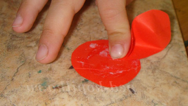 7. Щоб приклеювати пелюстки до основи «хвостик» пелюстки із зворотного боку закріплюємо клеєм.