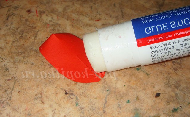 На готовий лист по лінії згину наносимо клей і приклеюємо до стеблинки.
