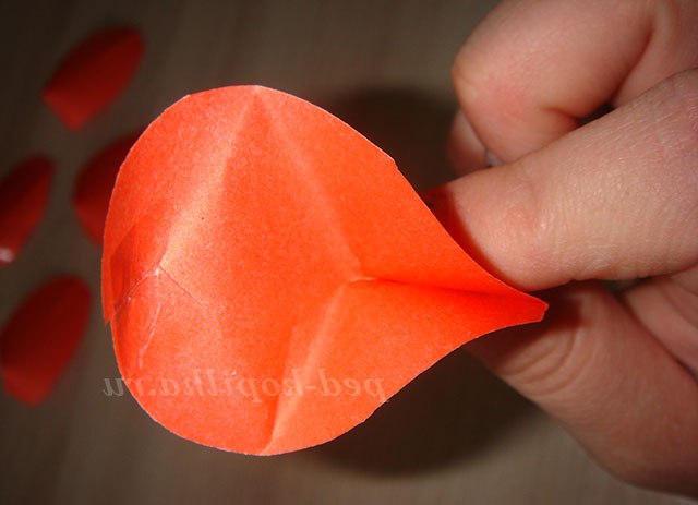 Надрізи приклеюємо, один до одного так, щоб і «гірка» і «ямка» дивилися в одну сторону. Так склеюємо всі 15 пелюсток.