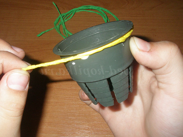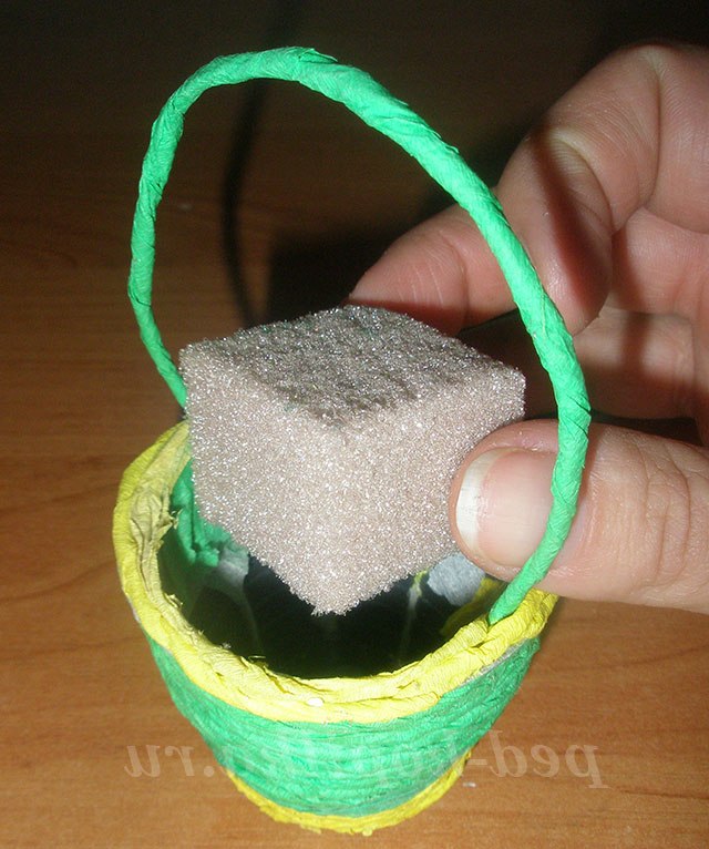 На дно кошики укладаємо шматочок оазису або пінопласту.